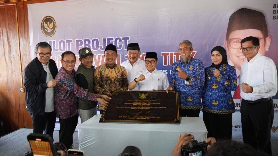 Kendal (Kilnas.com) – Bupati Kendal, Hj. Dyah Kartika Permanasari mendampingi Menteri Koordinator Bidang Pemberdayaan Masyarakat Muhaimin Iskandar saat Meresmikan Pilot Project dan Aktivasi 1001 Titik program Kawasan Pemberdayaan Masyarakat Berbasis Kawasan Se-Nusantara, Rabu (17/9/2025) bertempat di Kawasan Widuri Desa Wonosari, Kecamatan Pegandon, Kabupaten Kendal.