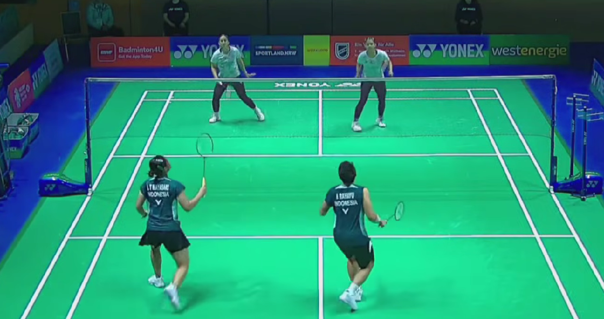 Kilnas.com – Pasangan ganda putri anyar Indonesia, Apriyani Rahayu/Lanny Tria Mayasari, tampil dominan pada putaran kedua German Open 2026. Bertanding di Westenergie Sporthalle, Jerman, Rabu (25/2), duo Merah Putih ini hanya membutuhkan waktu 24 menit untuk mendepak wakil Uni Emirat Arab (UEA), Mysha Omer Khan/Taabia Khan.